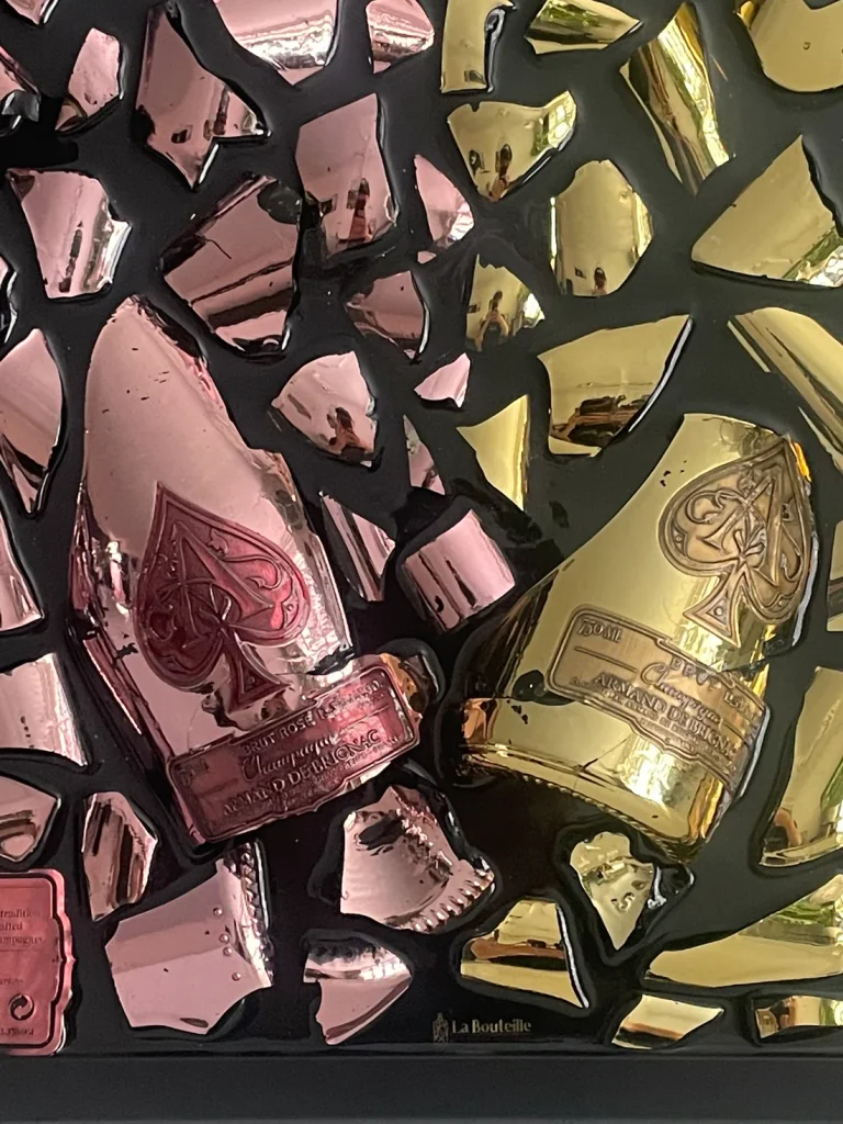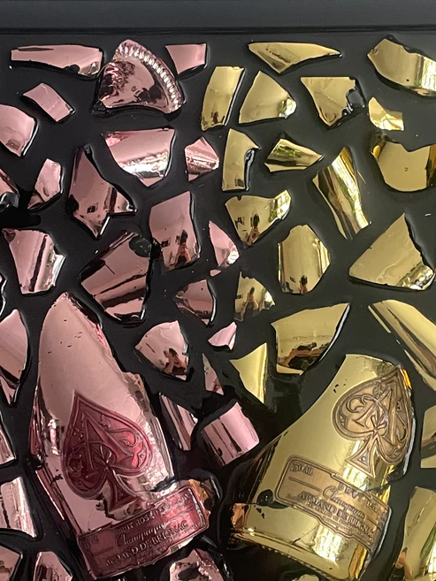 Each piece tells a story – a celebration frozen in time, encapsulating the essence of after-midnight extravagance. Unleash the spirit of luxury as we redefine recycling, bringing a touch of opulence to your space. Embrace the art of celebration, where every shattered bottle becomes a canvas for creativity.